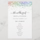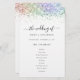 Budget Rainbow Glitter Script Wedding Program. A LARGER size 5.5” x 8.5” at a budget price, on an elegant 110 lb LINEN stock – for a luxury feel at great value, this is perfect for invitations, menus, programs etc. This budget size 5.5 x 8.5” alternative is also available in other paper choices. The SEMI-GLOSS 110 lb card stock is about the same thickness as a postcard, so also works well for invitations. The FELT 100 lbs paper is buff coloured, NOT white, so adds a rustic touch. The MATTE 80lbs paper stock is bright white, for crisp printing, great for your menus and programs, whilst the SATIN 80lbs paper is thin and light, ideal for enclosures. Glam style with multicolored faux glitter bordeing the top on each side. Easily personalise the text to your own requirements.