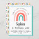 Invite friends and family to celebrate your child's birthday with this cute rainbow party invitation.