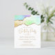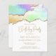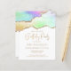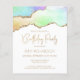 This trendy, feminine budget birthday party invitation is ideal for teen girls or women of any age. The design features a watercolor image of an agate geode in rainbow pastel shades of green, blue, purple, orange and yellow, trimmed with faux gold glitter highlights. The words "Birthday Party" appear in faux gold glitter in decorative modern handwriting font. Customise the invitation with the name of the guest of honour in gold art deco font and the party details in gold sans serif type on a white background. The same pastel agate image appears on the reverse side. Shop our collection for matching party supplies, including personalised decorations, favours, tableware, food and more. This agate design is also available in other card sizes/prices, specific birthday milestone years, other events (such as baby shower or bridal shower) and colour choices.