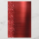 The left-hand edge of this elegant modern wedding invitation features a red faux glitter border. The customisable text combines white handwriting, copperplate and italic fonts on a red faux brushed metal background. The reverse side features a matching glitter and brushed metal design.