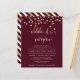 Budget Red & Gold Confetti Surprise Birthday Party Invitations by Eugene Designs. Send these elegant burgundy and gold invitations and start your surprise party with a modern message. On the front, in stylish handwritten style script are the words "shhh.. it's a surprise" in faux gold foil. On the reverse, there are sleek diagonal stripes in the same golden brown colours as the polka dot confetti on the front. Blocked white serif fonts communicate the details of your surprise party with maximum clarity.
