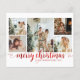 Modern Red Merry Christmas Heart Script 5 Photo Holiday Card