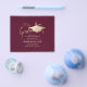 Modern In Budget Simple Minimalist Graduation Party Invitations Featuring Graduate Cap and stylish calligraphy script in burgundy marsala cherry wine red and gold metallic faux foil. Unexpensive but stylish and chic, Solid Black Clean Background, customisable in any colour.