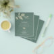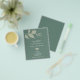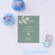 This simple yet elegant wedding rehearsal dinner invitation features modern greenery in sage green. Use the template fields to update your details in white over a dusty emerald green background. Change the colour of the leaves and background to suite your wedding theme. The card reverses to a complimentary colour. To see the complete wedding stationery suite visit www.zazzle.com/dotellabelle