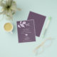 This simple yet elegant wedding rehearsal dinner invitation features modern greenery in lilac. Use the template fields to update your details in white over a plum purple background. Change the colour of the leaves and background to suite your wedding theme. The card reverses to a complimentary colour. To see the complete wedding stationery suite visit www.zazzle.com/dotellabelle