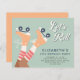 Budget-friendly roller skating sage green birthday party invitation for any age with "Let's Roll!" in a white script and a retro-inspired illustration of orange roller skates on a girl wearing red and white striped tube socks. Add her name and birthday year in dark teal blue typography.