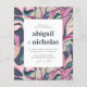 Bright Colours Abstract Floral Groovy Retro Wedding Invitations, a modern twist on a retro theme. The front of these budget invitations showcases an abstract botanical pattern in bold & bright tones of purple, blue, and teal. The wedding details are presented on a white rectangular overlay with curved corners, while the couple's names take centre stage in bold lowercase serif letters, creating a vintage-inspired look. The rest of the text follows suit with modern sans-serif typography, offering a contemporary touch. Flip the card over to find the same pattern. This maximalist invitation combines groovy, abstract elements reminiscent of the '70s with modern sophistication, making it a versatile choice for couples seeking a unique wedding invitation. The groovy and abstract elements add a nostalgic touch, setting the stage for a celebration that is as individual as your love story. As part of the budget selection on Zazzle, this sheet isn't a standard invite size or paper quality. If you want this design on an invitation card you can find it in our store or use the Zazzle Make Machine to transfer it onto the product of your choice. Browse the collection link on this page for matching items or visit our store for more groovy designs. If you have any questions, please feel free to contact us. Kindly note that modifications to existing orders are not possible, so please reach out to us first.
