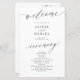 Modern simple minimalist black script trendy clean white ceremony and party BUDGET affordable wedding program template featuring chic trendy romantic elegant calligraphy. ++++++++++++ Easy to personalise with your custom text on both sides!