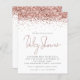 A value for money BUDGET alternative on a smaller size 4.5 x 5.6” semi-gloss 110lbs weight, which is of similar thickness to a postcard (however is not suitable to use as a postcard.). PLEASE NOTE there is ONE invite per sheet. Budget Rose Gold Glitter Baby Shower Invitation. A touch of glam to celebrate the mum to be with a faux glitter border at the top on both sides and occasion header in a set informal script. Easily personalise the rest of the text to your own details.