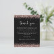 A value for money BUDGET alternative on a smaller size 4.5 x 5.6” semi-gloss 110lbs weight, which is of similar thickness to a postcard (however is not suitable to use as a postcard.). PLEASE NOTE there is ONE invite per sheet. Rose Gold Glitter Engagement Black Thank You. Glam Rose gold faux glitter borders are at the top and bottom on each side, and Thank You is in a set handwriting style script in coordinating rose. Easily personalise the rest of the text. You can also change the text and background colours via the customise further option if you wish.