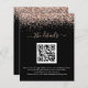 A value for money BUDGET alternative on a smaller size 4.5 x 5.6” semi-gloss 110lbs weight, which is of similar thickness to a postcard (however is not suitable to use as a postcard.). PLEASE NOTE there is ONE invite per sheet. Budget Rose Gold Glitter QR Code Black Wedding Details. A faux glitter border at the top on both sides with an elegant script with swashes for the header. Swap in your QR code to your wedding website for a convenient way for your guests to see all the details they need. To create a QR code, search online "generate a QR code"