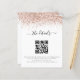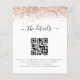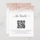 Budget Rose Gold Glitter QR Code Wedding Details. A budget price SMALLER 4.5” x 5.6” alternative. Available in a SEMI GLOSS 110 lb CARD STOCK which is the default option (recommended for invitations, similar to the thickness of a postcard), OR a SATIN FINISH 80 lb THIN PAPER STOCK (more suited for thin enclosures). A faux glitter border at the top on both sides with an elegant script with swashes for the header. Swap in your QR code to your wedding website for a convenient way for your guests to see all the details they need. To create a QR code, search online "generate a QR code"