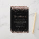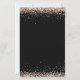 Rose Gold Glitter Wedding Black Invitation. A LARGER size 5.5” x 8.5” at a budget price, on a SEMI GLOSS 110 lb CARD STOCK, great for invitations, at roughly the same thickness as a postcard, or an elegant 110 lb LINEN stock – for a luxury, slightly thinner feel at great value. PLEASE NOTE THE OPTIONAL ENVELOPES ARE A LITTLE BIGGER IN SIZE AT 6.75” x 9” approx. This budget size alternative is also available in other paper choices. The FELT 100 lbs paper is buff coloured, NOT white, so adds a rustic touch. The MATTE 80lbs paper stock for crisp printing, great for your menus and programs, whilst the SATIN 80lbs paper is thin and light, ideal for enclosures. An elegant set typography is in gold for the main heading the Wedding Of complementing the rest of the text which you can easily personalise, with gold faux glitter confetti borders at the top and bottom and also on the back.