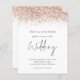 A value for money BUDGET alternative on a smaller size 4.5 x 5.6” semi-gloss 110lbs weight, which is of similar thickness to a postcard (however is not suitable to use as a postcard.). PLEASE NOTE there is ONE invite per sheet. Budget Rose Gold Glitter Wedding Invitation. A set handwriting style script for Wedding and the rest of the text you can easily personalise, with a faux glitter border in rose gold at the top edge on both sides.