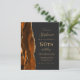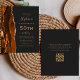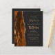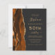 The left-hand edge of this elegant modern 50th birthday party invitation features a burnt orange and rust watercolor agate border trimmed with gold faux glitter. The customisable text combines gold-coloured handwriting, copperplate and italic fonts on a slate black background. Add RSVP instructions on the back of the card, along with a QR code guests can scan to respond online.