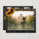 Rustic sunflowers and string lights on dark brown barn wood 5 photos collage grid thank you elegant BUDGET affordable wedding card with a chic gold typography script. +++++++++ Personalise with your names, photo and text! ++++++++++ Suitable for floral summer or autumn fall / garden backyard rustic country themed weddings. ++++++++++++++++++++++ PLEASE READ THIS BEFORE PURCHASING! This is a budget affordable wedding card printed on a paper sheet (each sheet has one card). ++++ For the best rapport price quality, our advice is to choose the Semi-Gloss paper type (it is thick enough to be used for stationery) ++++ If you need envelopes, choose the ENVELOPE OPTION. +++ Double-check all the information and spelling of your text because you will receive exactly what you see - no one else will check anything before printing. ++++ This card is designed for size 4.5" x 5.6". In the case you choose another size of the card and text goes outside page, everything needs to be fixed before adding the product to cart. Please ask Live Design Service for help.