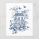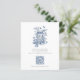 Budget Rustic Blue Toile De Jouy QR Code Wedding RSVP. A budget priced size 4.5 x 5.6” 110lbs semi-gloss, similar in thickness to a postcard. There is ONE per sheet. A blue toile de jouy floral design is above the text and your QR code on the front and larger on the back.