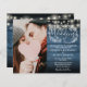 Featuring pretty string lights and a hand-drawn floral garland, this elegant budget rustic kraft wedding invitation can be personalised with your special photo and information set in chic lettering on a blue wood panels background. Designed by Thisisnotme©