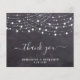 Send out Thank You notes to your friends and family from your wedding with these rustic chalkboard slate with string lights thank you cards. Customise these wedding thank you cards with your personal message. These unique slate wedding thank you cards will make a lasting impression, your guests, family and friends! COPYRIGHT © 2020 Judy Burrows, Black Dog Art - All Rights Reserved. Budget Rustic Chalkboard String Lights Thank You