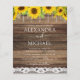 Budget Rustic Sunflower Farmhouse String Lights Lace Wedding Invitations on Wood background - includes beautiful and elegant script typography with modern Country Farm House Sparkle for the special Wedding day celebration.