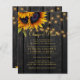 Elegant chic summer or fall wedding rustic wedding change of plans reschedule or date changing BUDGET affordable invitation template on dark brown barn wood featuring a beautiful sunflowers bouquet and strings or twinkle lights. +++++++++++++ Easy to personalise with your details! ++++++++++++++++++++++ PLEASE READ THIS BEFORE PURCHASING! This is a budget affordable wedding card printed on a paper sheet (each sheet has one card). ++++ For the best rapport price quality, our advice is to choose the Semi-Gloss paper type (it is thick enough to be used for stationery) ++++ If you need envelopes, choose the ENVELOPE OPTION. +++ Double-check all the information and spelling of your text because you will receive exactly what you see - no one else will check anything before printing. ++++ This card is designed for size 4.5" x 5.6". In the case you choose another size of the card and text goes outside page, everything needs to be fixed before adding the product to cart. Please ask Live Design Service for help.
