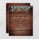 Invite your friends and family to your bridal shower with these rustic wood with eucalyptus, elegant but casual bridal shower invitation postcards. These budget wedding invitation cards have an envelope option. Personalise with name, bridal shower date, location and any other info. Add website and any other information on the back. These unique greenery bridal shower invitations will make a lasting impression. COPYRIGHT © 2020 Judy Burrows, Black Dog Art - All Rights Reserved. Budget Rustic Greenery Bridal Shower Invitation