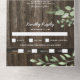 A 3 in 1 rustic country chic wedding trifold invitation featuring a rustic wood barrel background, twinkle string lights, botanical greenery watercolor foliage, your monogram, wedding details, wedding invite, and a meal rsvp postcard for your guests to tear off and send back.