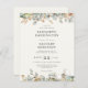 This rustic wedding invitation features watercolor top and bottom borders of delicate greenery. Personalise it with the names of the bride and groom in vintage charcoal grey typeface on an off-white background. Add the couple's initial on the back, encircled by a small matching watercolor wreath.