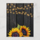 Rustic elegant affordable BUDGET summer or fall wedding stylish affordable invitation flyer template on dark brown barn wood featuring a beautiful sunflowers bouquet and strings of twinkle lights. Easy to personalise with your details. +++++++++++++ The invitation is suitable for elegant summer or autumn fall rustic country budget weddings.++++++++++ PLEASE READ THIS BEFORE PURCHASING! This is a budget affordable wedding card printed on a FLYER. ++++ Please note that BUDGET PAPER IS THIN - You can upgrade to have this card printed on cardstock ++++ ENVELOPES NOT INCLUDED. +++ Double-check all the information and spelling of your text because you will receive exactly what you see - no one else will check anything before printing. ++++ This card is designed for size 4.5" x 5.6". In the case you choose another size of the card and text goes outside page, everything needs to be fixed before adding the product to cart. Please ask Live Design Service for help.