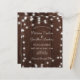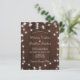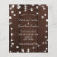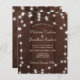 Rustic country budget affordable wedding invitation with strings of lights on a dark brown barn wood background and a chic calligraphy script, ++++++++++++++++++ Suitable for summer, autumn fall, or winter garden, backyard, outdoor, barn, farmhouse weddings.