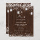 Budget, rustic mason jar wedding invitation with string lights.