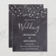 Invite friends and family to your wedding with these elegant yet rustic chalkboard and string lights wedding invitation cards. These unique slate all in one wedding invitations feature elegant white string lights on grey chalkboard slate design with wedding website qr code for easy RSVP's. Personalise these chalkboard wedding invitations with names, wedding date, and location. See our wedding collection for unique wedding invitations, wedding photo albums, guest books, party gifts, and more! COPYRIGHT © 2020 Judy Burrows, Black Dog Art - All Rights Reserved. Budget Rustic Slate String Lights QR Code Wedding