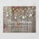 Budget Rustic Stars and String Lights on Barnwood Christmas Card - Budget card features rustic barn wood with hanging primitive stars, bells and string lights. Merry Christmas is in a pretty, script font. Our high quality template makes it so simple to personalise your budget Christmas card. Card is part of a collection.