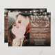 Featuring pretty string lights and a hand-drawn floral garland, this elegant budget rustic kraft wedding invitation can be personalised with your special photo and information set in chic lettering on a wood panels background. Designed by Thisisnotme©