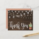 Budget Rustic String Lights on Wood with Succulent Cactus Thank You Cards featuring festive strings of lights and a cute potted bag of succulents and cactus on a rustic wood background. **Our BUDGET paper is smaller, lighter, and more delicate, but still beautiful! Don't forget the envelopes!** If you need assistance or matching items, please contact us at katescreationszazzle@gmail.com