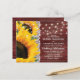 Budget country wedding invitations featuring a rustic barn wooden background, yellow sunflowers, bridal lace, twinkle string lights and an elegant wedding template.