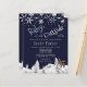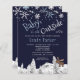 Rustic wonderland baby it's cold outside boy shower winter chic budget affordable invitation template with borders of white snowflakes, falling snow and pine trees landscape on a dark midnight navy blue background. +++++++++++++++ Please note that the background colour is editable on both sides. To change it, go to CUSTOMIZE option. ++++++++++++++++ The invitation is suitable for elegant mountains woodland rustic winter Christmas baby shower parties. ++++++++++ PLEASE READ THIS BEFORE PURCHASING! This is a budget affordable wedding card printed on a paper sheet (each sheet has one card). ++++ For the best rapport price-quality, our advice is to choose the Semi-Gloss paper type (it is thick enough to be used for stationery) ++++ If you need envelopes, choose the ENVELOPE OPTION. +++ Double-check all the information and spelling of your text because you will receive exactly what you see - no one else will check anything before printing. ++++ This card is designed for size 4.5" x 5.6". In the case you choose another size of the card and text goes outside page, everything needs to be fixed before adding the product to cart. Please ask Live Design Service for help.