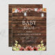 Budget Rustic Country Outdoors on Dark Wood with Burgundy, Orange and Yellow Sunflowers with Mason Jars on String Light Autumn or Fall Baby Shower Invitations - includes beautiful and elegant script typography for the special Mother to Be celebration.