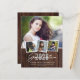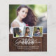 Budget Rustic Wood Graduation 4 Photo Announcement featuring elegant script and modern text, with space for 4 photos to announce your graduate's big news! Our budget paper is a thinner and more delicate paper; less expensive, but still perfect for your invites! Be sure to select an envelope option! Please contact us at cedarandstring@gmail.com if you need assistance with the design or matching products.
