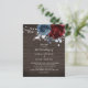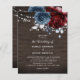 This Budget Rustic Wooden Wedding invitation features a dusty blue and burgundy roses, string lights, dusty grey twigs and leaves on the wooden background. A sensual atmospheric and bright invitation for modern wedding.