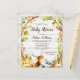This cute woodland animals budget baby shower invitation is a great choice for your event. Lovely watercolor forest branches and leaves with adorable baby animal illustrations: fox, moose, racoon and hedgehog. This unique design works for a gender neutral baby shower or for a little boy. Personalise using the online template fields.