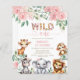 Budget safari animal wild one blush floral girl 1st birthday invitation.