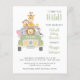 Cute budget-friendly baby boy virtual shower invitation featuring an illustration of baby zoo animals (lion, elephant, zebra, monkey and giraffe) piled into a safari vehicle and "It's About to Get Wild" in fun typography, and "Baby Shower" and the mother's name in coordinating army green script. You can easily personalise the virtual shower details, change the "It’s a Boy!" text on the vehicle, and add the shower date on the license plate, or leave blank.