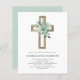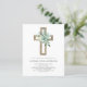 Budget Sage Green Boy or Girl Eucalyptus and Gold Foil Cross Botanical Greenery Watercolor Christian Religious Baptism Invitations.