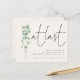 A value for money BUDGET alternative on a smaller size 4.5 x 5.6” semi-gloss 110lbs weight, which is of similar thickness to a postcard (however is not suitable to use as a postcard.). PLEASE NOTE there is ONE invite per sheet. Budget Elegant Sage Eucalyptus Sage Cream At Last Save The Date. Modern botanical design to invite family and friends to save your wedding date, with watercolor sage foliage flowing down on the left hand side and text to the right on a background of pale cream. A set handwriting style script for At Last and the rest of the text you can easily personalise.