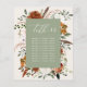 Budget botanical floral rust, terracotta, black, natural and sage green rustic, elegant table seating plan wedding day decor. On trend script text, part of a matching wedding suite.