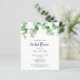 Budget Sage green eucalyptus botanical leaf bridal shower postcard invitation. Modern and chic design.