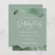 This trendy birthday invitation features a watercolor image of an agate geode in shades of sage green with faux silver glitter highlights. The words "Birthday Party" appear in decorative modern handwriting font. Customise it with the name of the guest of honour in white type on a sage green background. The reverse side is solid sage green.