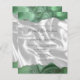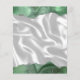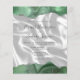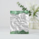 The top and bottom edges of this elegant modern wedding invitation feature a sage green watercolor agate border trimmed with faux silver glitter. The customisable text combines handwriting, sans serif and italic fonts in charcoal grey on a background image of white silk. The reverse side features a matching sage green agate and white silk design.