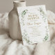 Our budget-friendly bridal shower invitations are as delightful as they are affordable. Adorned with a lovely watercolor illustration of greenery, they set the perfect tone for a celebration. Inside, the text is elegantly presented in serif font, with the bride-to-be's name highlighted in modern script, adding a touch of charm. Join us for a celebration of love and laughter!